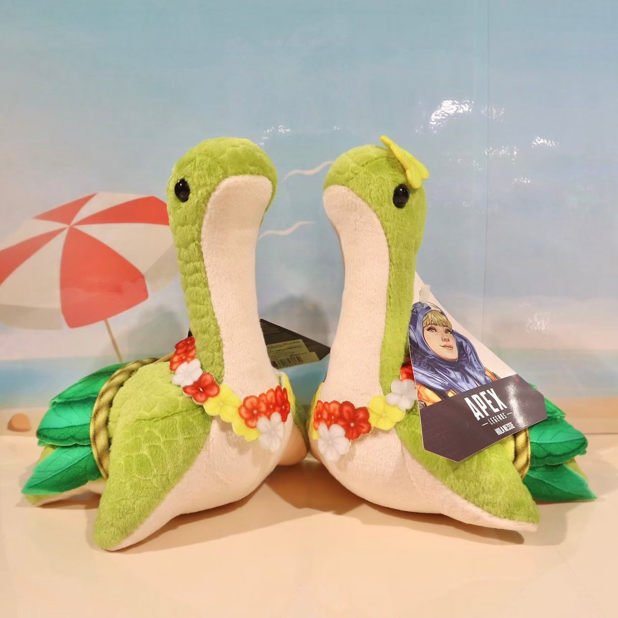 リーフ型のスカートに、ハワイアンレイをつけた特別なネッシー