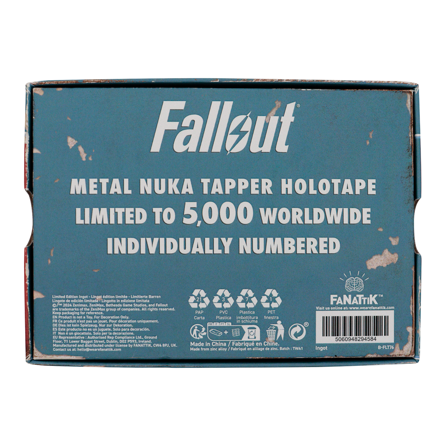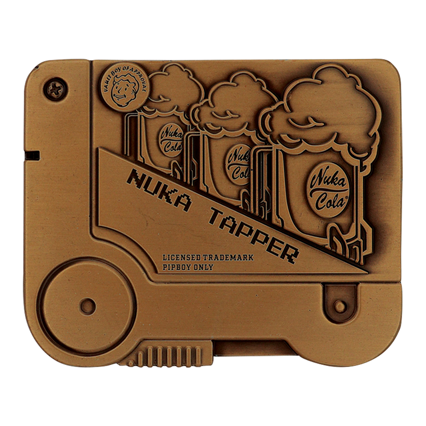『Fallout 76』に登場するミニゲーム「Nuka Tapper」をモチーフにした、重厚なメタル製ホロテープ。