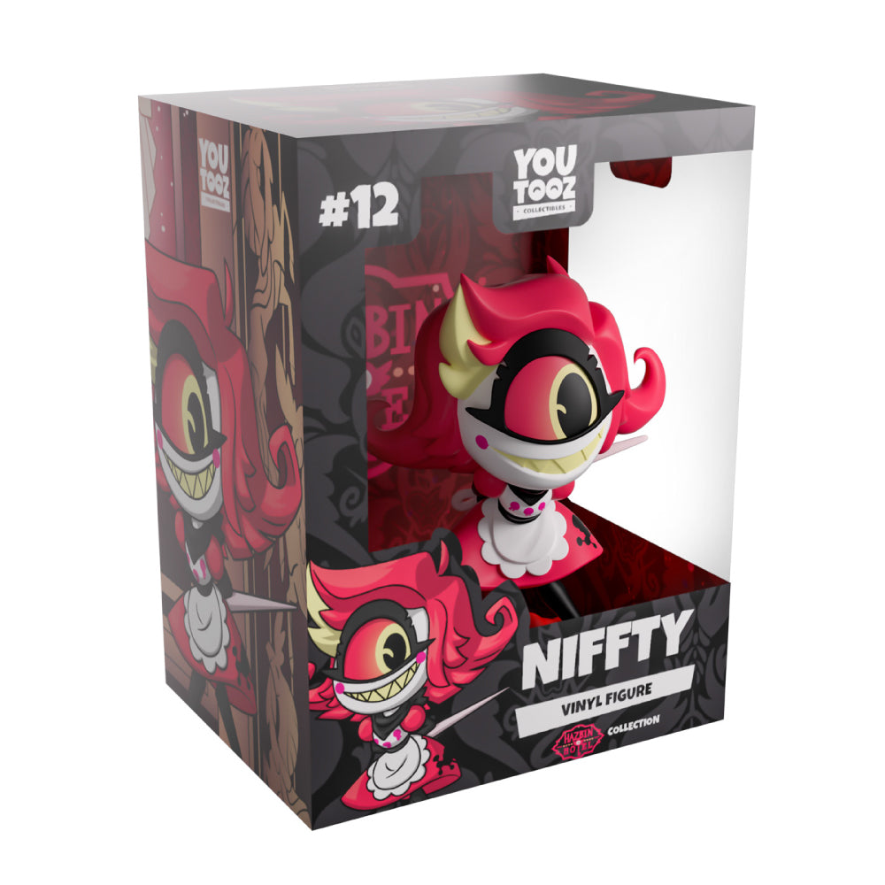 ■商品詳細ハズビンホテルのメイド「ニフティ」のYoutooz社製フィギュアが登場!!彼女のパッケージの外側は、正面に蛇に巻き付いた花瓶があるホテルの廊下を見下ろしているようなデザイン、ポーズや表情などディテールにこだわった逸品です。■サイズ(本体)・約12.4cm