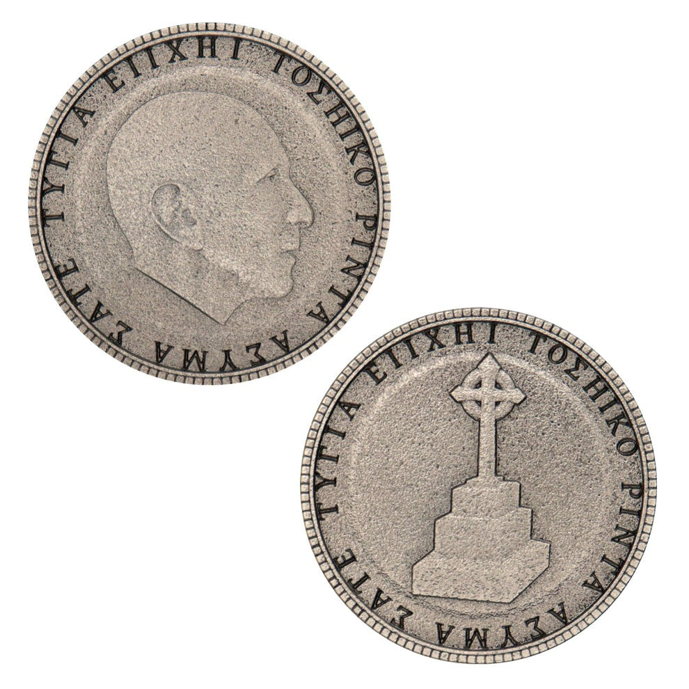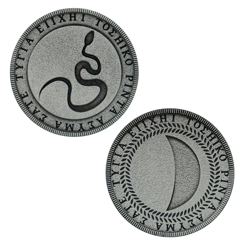 ブルークリークアパート105号室にあるパズルで使用される「老人、囚人、蛇」が描かれている3枚のコインは、ディスプレイボックス付きでディテールにこだわったグッズです。