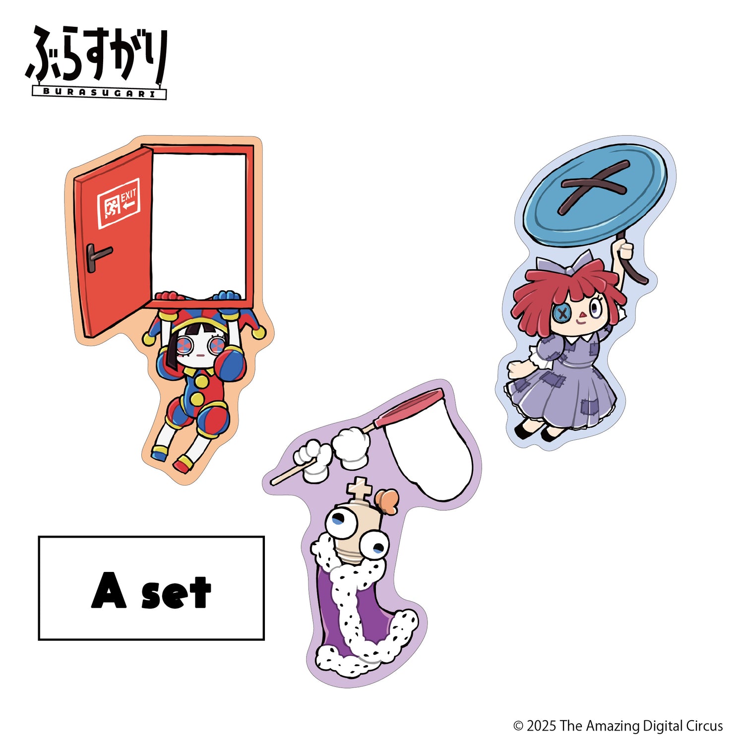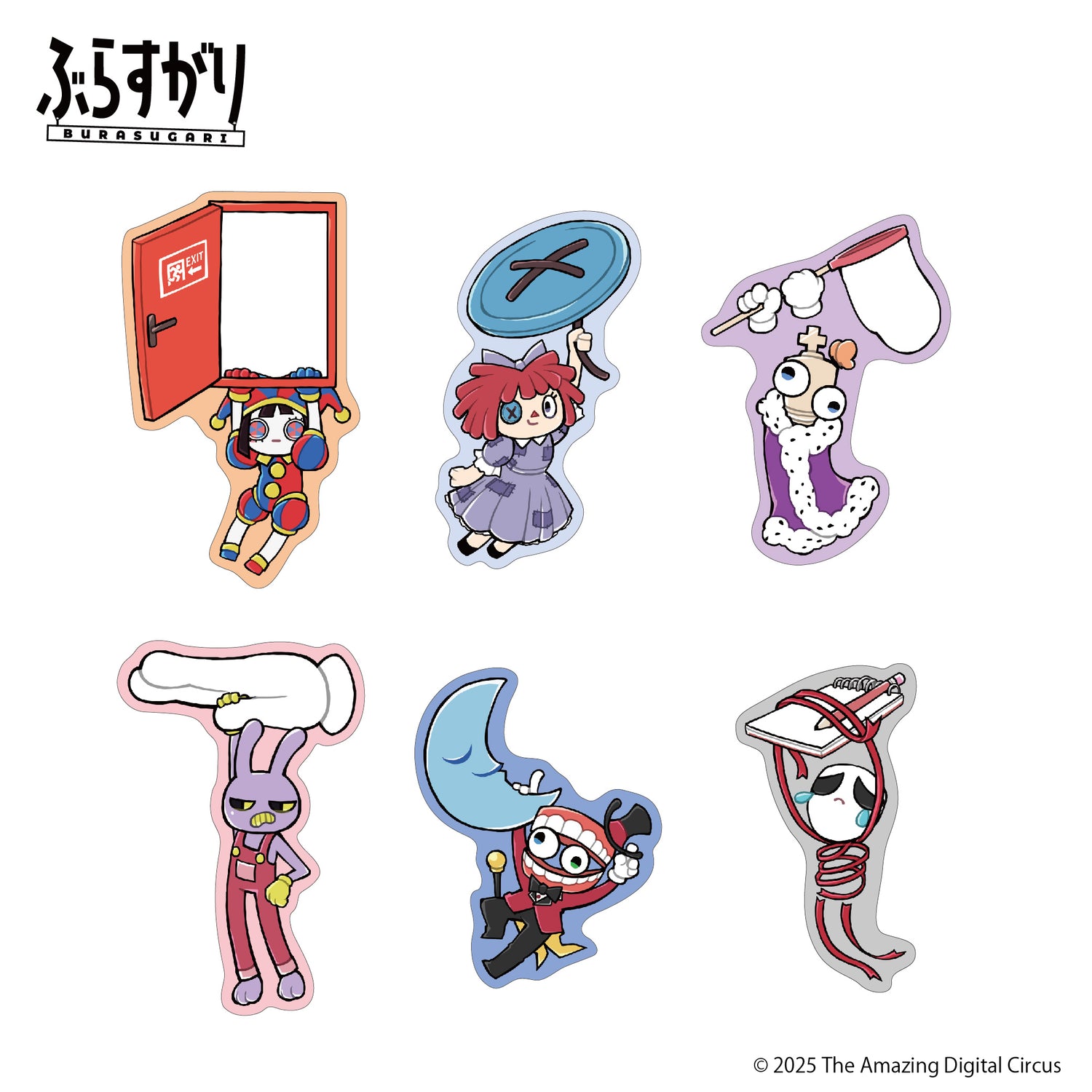 「ぶら下がる」+「すがる」を掛け合わせた「ぶらすがり」より、大人気アニメーション「アメイジングデジタルサーカス」のダイカットステッカーが発売!